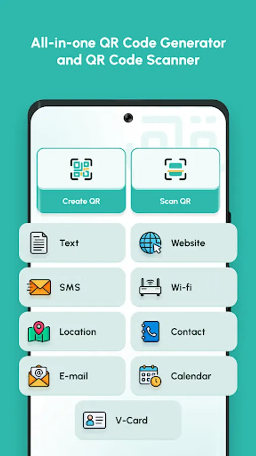 - Create 🔳 general QR codes or social QR codes, including V-cards, text, website, SMS, Wi-Fi, location, contact, email, calendar, and more.