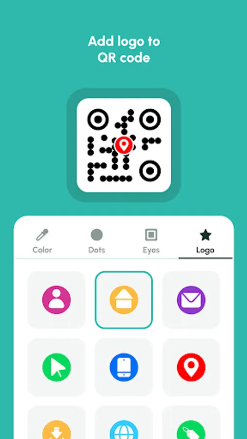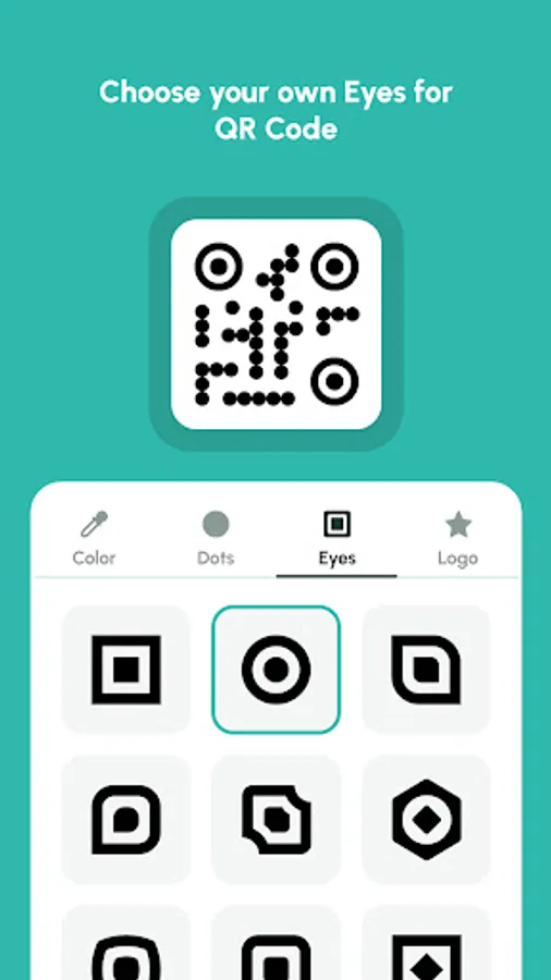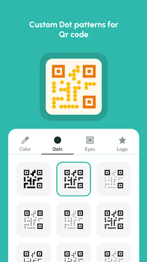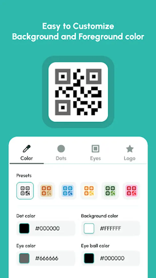 - Change the color, apply dots, eyes, or select a logo, and change the background color of the QR code.