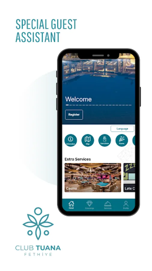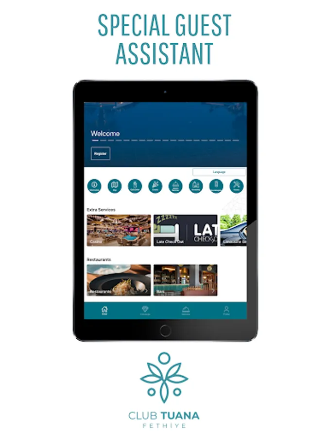 Welcome to Club Tuana, with our mobile app you can send us your mobile check-in, restaurant booking, towel to your room, a nice dinner, room service, taxi or any other request directly. We plan to give you a magnificent accommodation experience with our hotel's strong customer satisfaction. We provide the best experience for our guests.