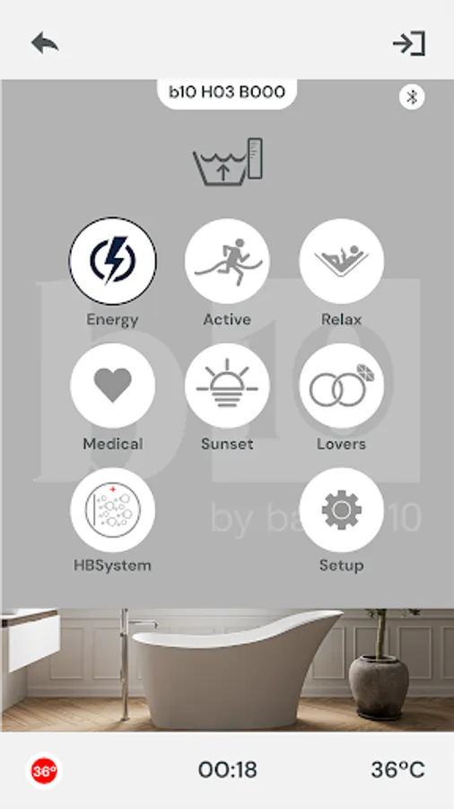 hydrotherapy experience? Our b Connect app is a bluetooth application included with Premium System and, optionally, with Control + Air System, which allows you to control your bathtub via your phone or the tablet. Just relax and enjoy the predefined massages programs or customise your treatment with the configuration options.