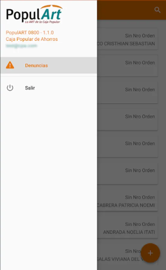 Application that allows the registration of a new ART complaint from the PopulART system of the Caja Popular de Ahorros de Tucumán that is made by communicating to the number 0800 designated for such case.