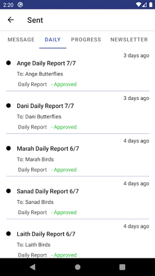 By few clicks, you will be able to create daily reports for the students, including many sections to track the student day like their mood, naps, and meals and send it to the guardians