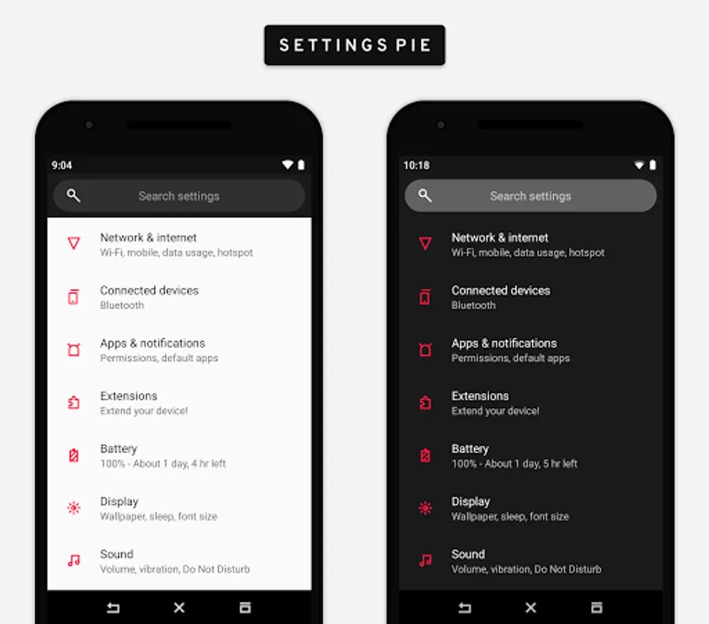• Theme supports Android 9.0 Pie roms