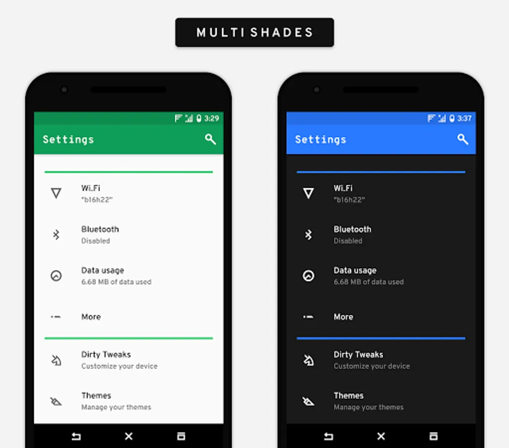 • It is a light theme with dark overlay option for some apps
