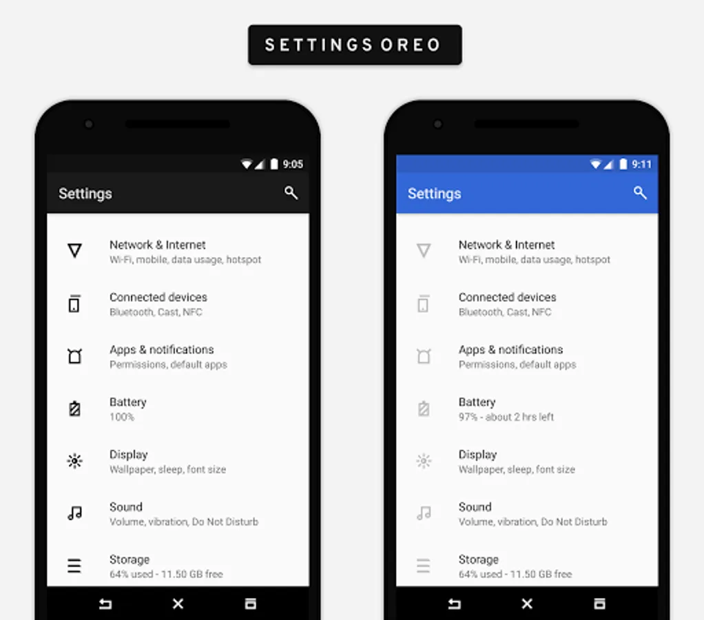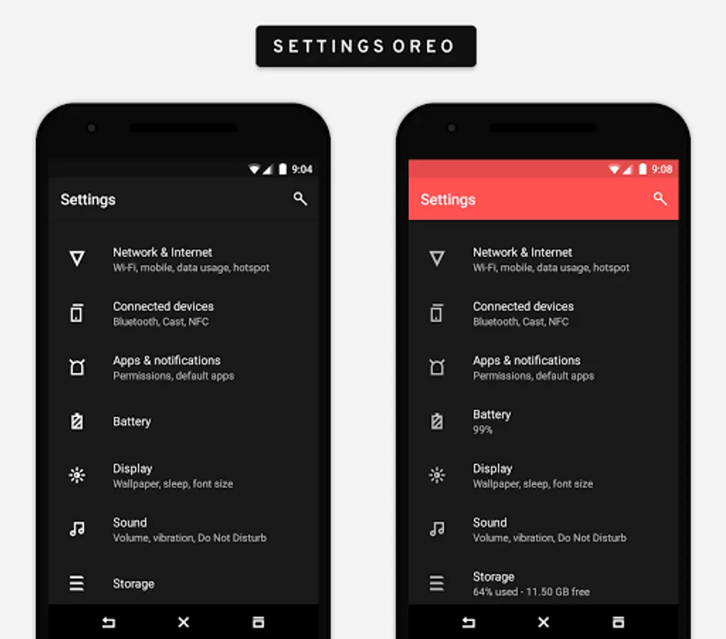 • Theme supports android 7.0+, 8.0, 8.1 and 9.0 ROMs with OMS support