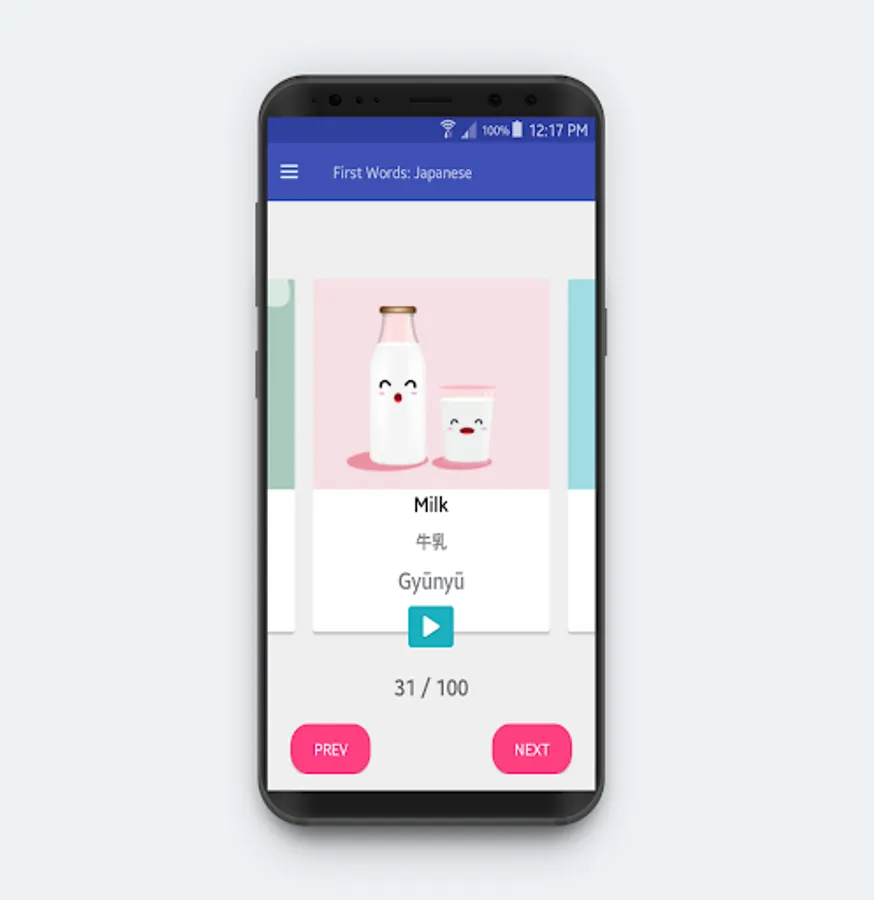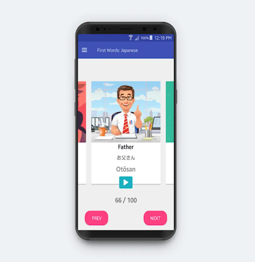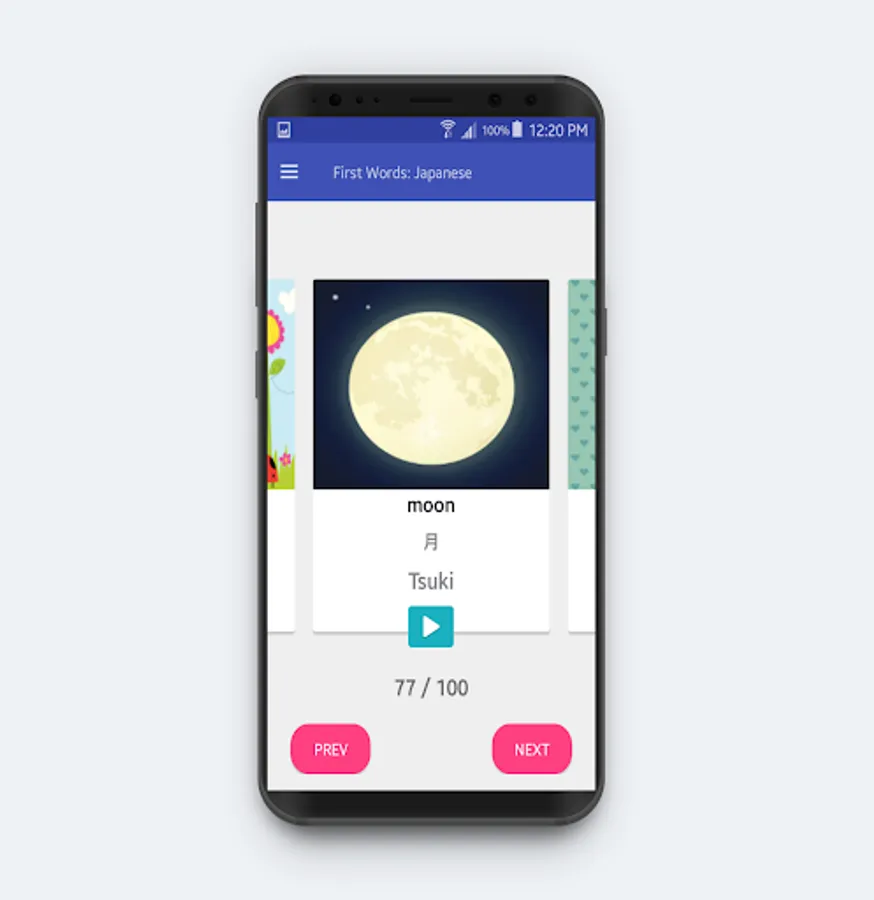 user friendly with it's simple yet elegant ui design to learn your first 100 japanese vocabulary in less than 1 Week,