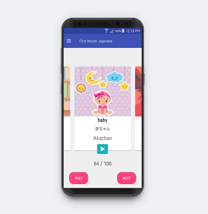 Learn Your First 100 Japanese Vocabulary For Beginners offline with images and audio.
