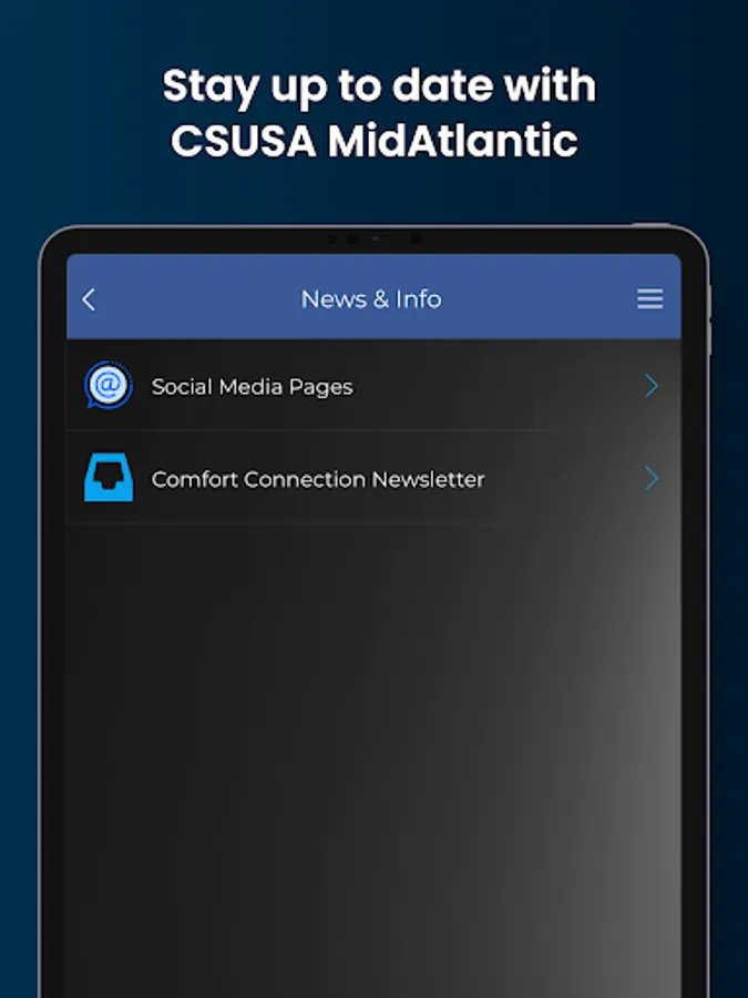 This is for the general public to learn more about CSUSA MidAtlantic. The purpose of the app is for users to learn about the services we offer and the career opportunities available. The app will also help customers be able to easily provide feedback on our services.