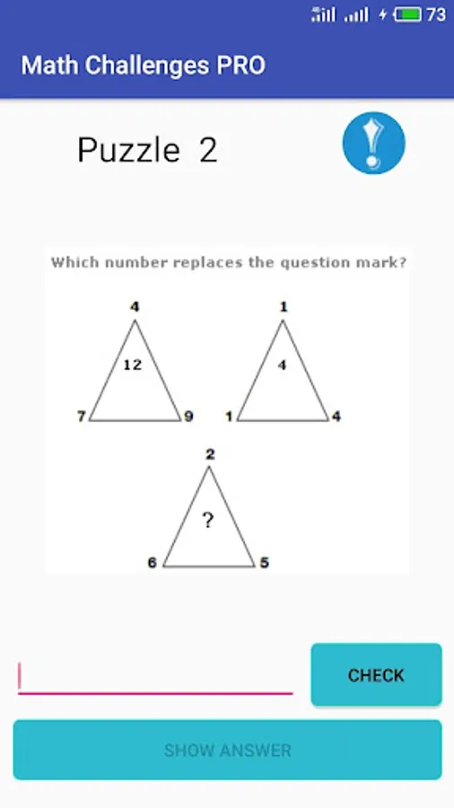 This Math Challenges PRO 2021 game contains 80 challenging brain teasers. Each brain teaser offers a different and unique challenge which forces the user to think in unconventional way.