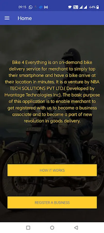 Business Bike 4 Everything Sales Executive Application for adding businesses on the go as customers/ users who can uses business Bike 4 Everything Application to book their goods deliveries to their customers.
