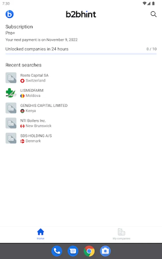 B2BHint is all about empowering people to find comprehensive information about companies and people they are associated with. We want to make it easier and faster for you to build partnerships with new companies. We want you to eliminate risky / "fly-by-night" companies as well as failed partnerships. Accurate, fast, up-to-date and comprehensive. These are the values that connect our users and our employees at B2BHint.