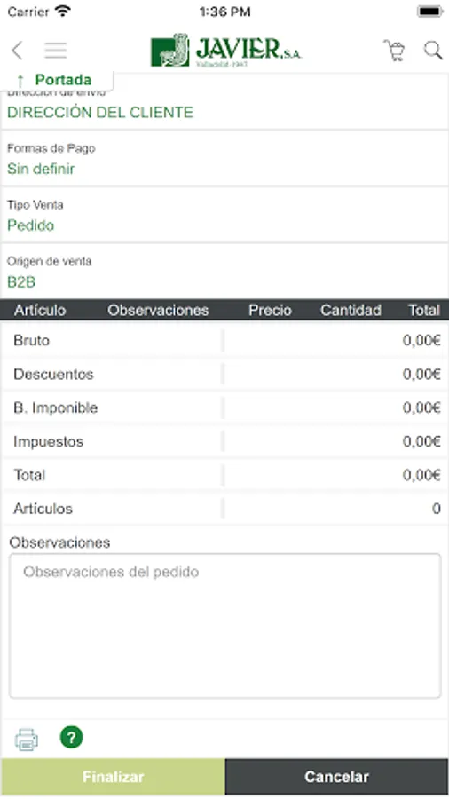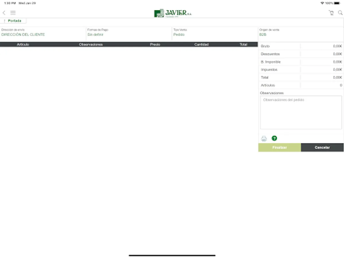 Application to be able to consult the Javier SA catalog and to be able to place orders directly