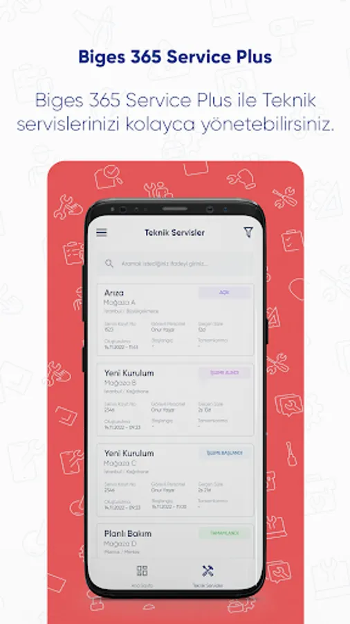 The Biges 365 Service Plus application developed by Biges for its solution partners has been developed to make the management of their service processes efficient. In this application, our solution partners can manage and plan the technical services opened to them, view the documents of the relevant record, add new documents, assign personnel and dates.