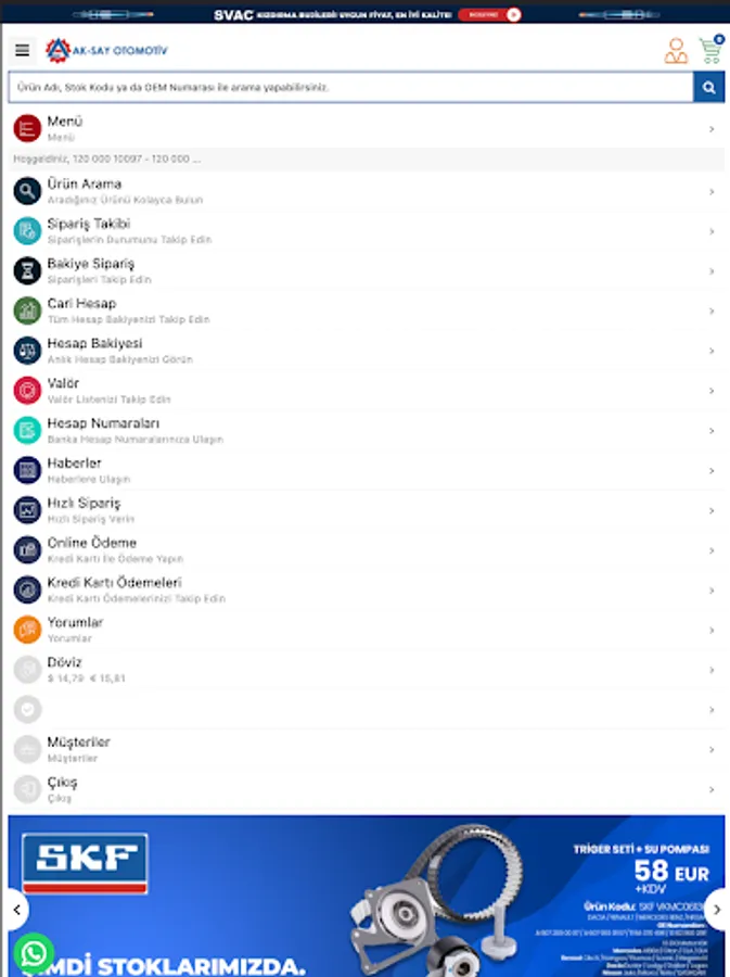 Thanks to the Aksay Automotive B2B application, you can access the Products and Product prices, create your orders, track your order processes, and check the Current Account.