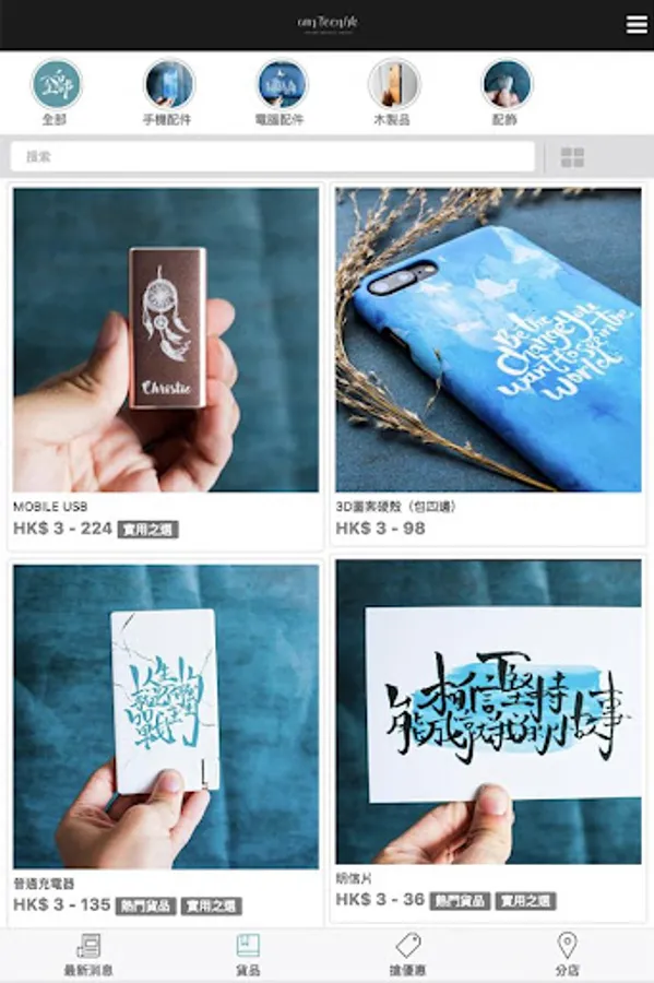 這裡每一件產品都是獨一無二的創作。利用你剛拍下或分享的照片上載到Canteenhk,或者告訴我們你的設計要求及意念。不久後,由設計師為你度身訂造的禮物便會送到您面前。無論是多款創新的手機殼,包括透明手機殼、原木手機殼、實色手機殼、手寫字體手機殼、半透明殼、四邊均有圖案色彩的全包殼等,抑或是各款充電器、結他鏈飾物,或者是各款木製品,例如木刻筆,木刻外置記憶體,木刻音樂盒,和各類服裝,你都可以定製!