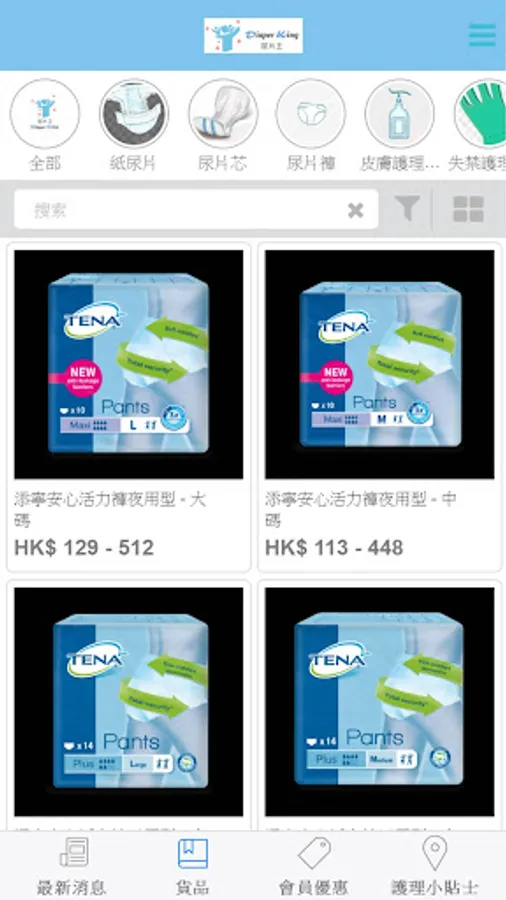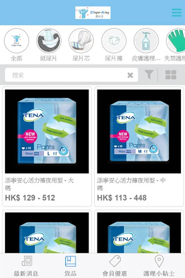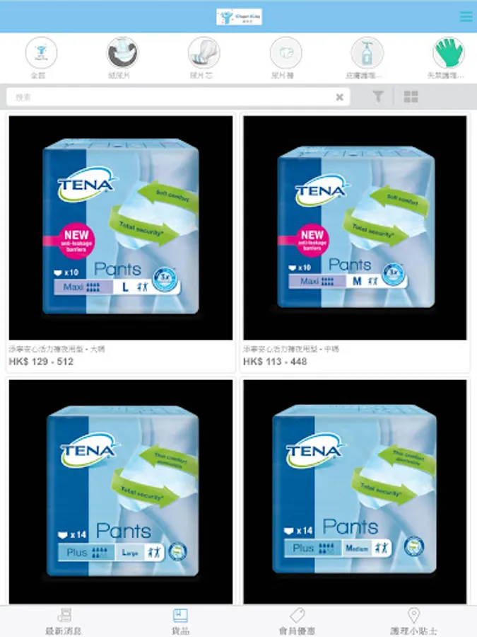 我們專營的產品種類包括:各類型成人紙尿片, 片芯, 尿片褲, 尿疹膏, 濕紙巾, 手套, 營養奶等產品。