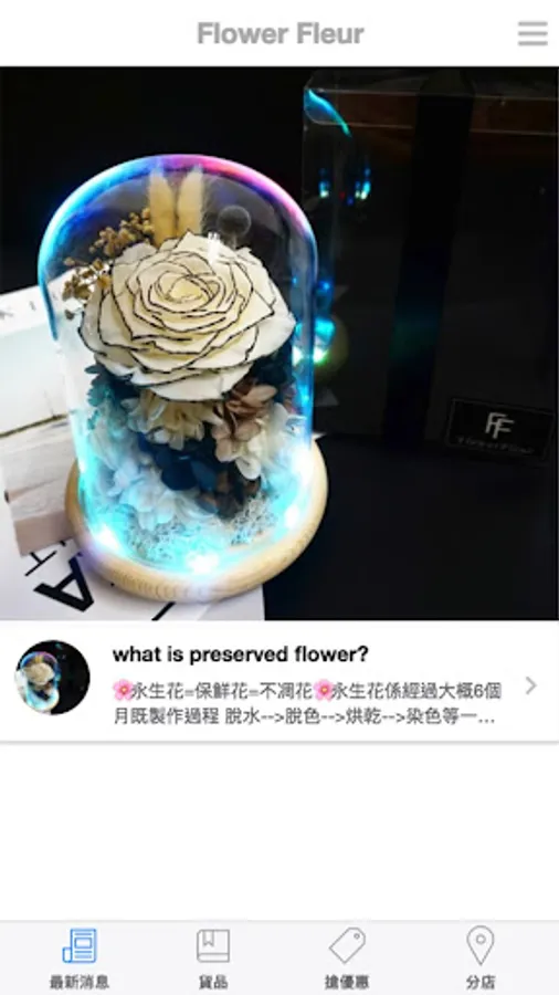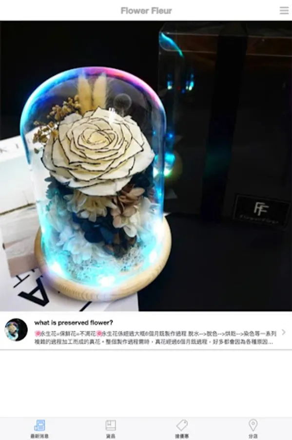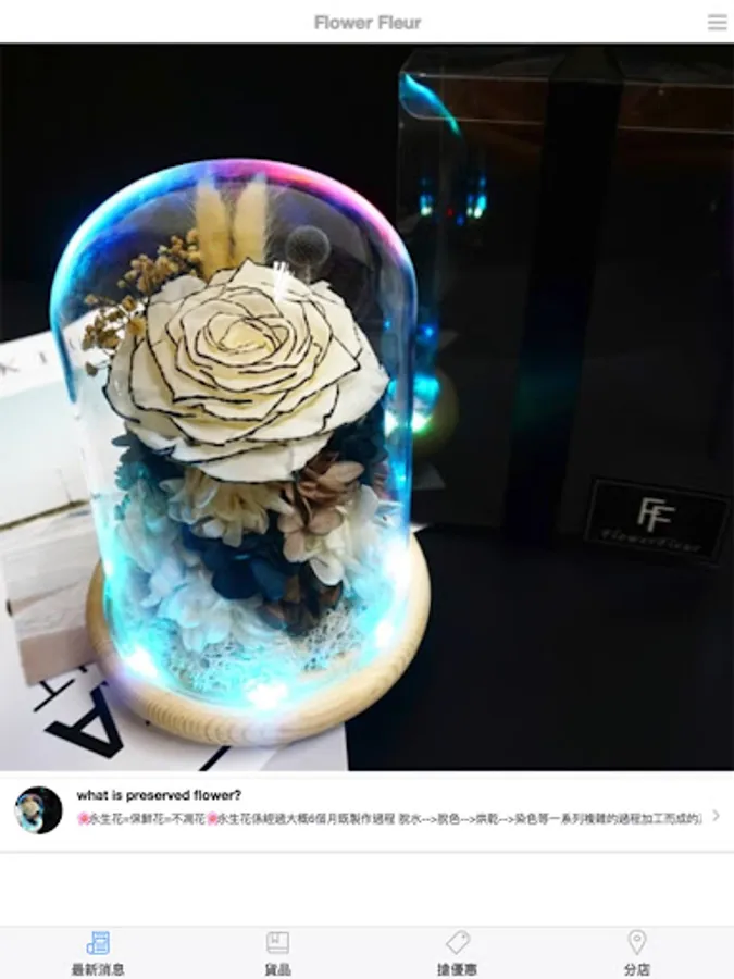 好多人都中意花,無論男女。鮮花一般只可以放1個星期左右,而且價錢都吾便,放一個星期就凋謝其實好浪費。比起鮮花,保鮮花更耐看。一般保鮮花可以放3-5年,代表永恆的愛,有時見到都會窩心 有人常誤會保鮮花係乾花,其實係錯誤既。保鮮花雖然經過脫水過程,但因為加入特定物料,無論係色澤、性狀、手感幾乎都同鮮花無分別,亦都係永生花比乾花貴得多的原因。