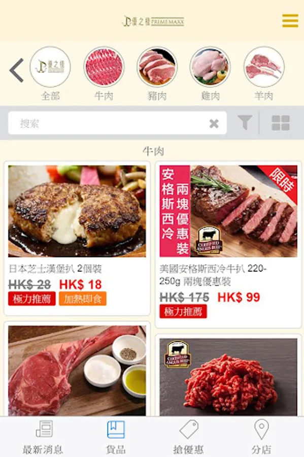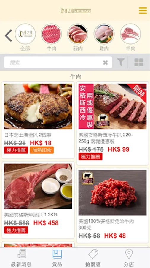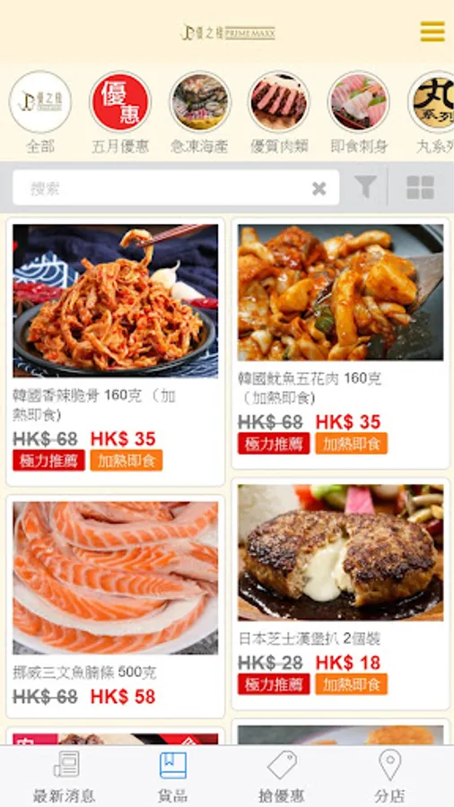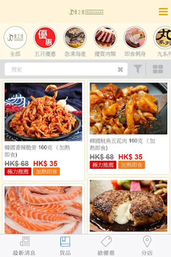 種類包括: 急凍海產、優質肉類、即食刺身、前菜小食、氣炸鍋精選、燒烤/火鍋、甜品