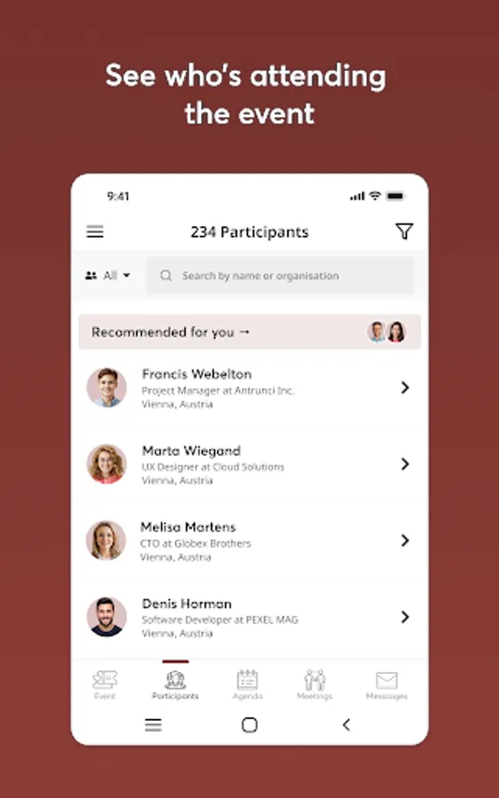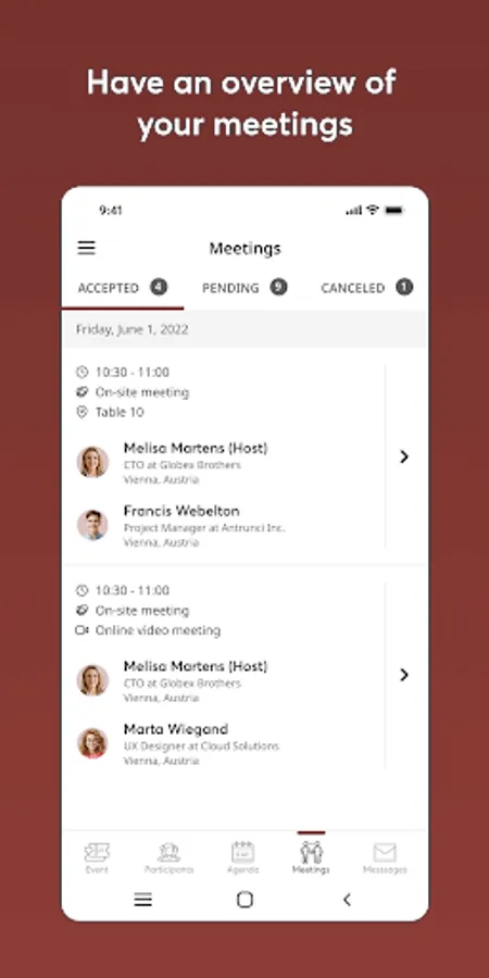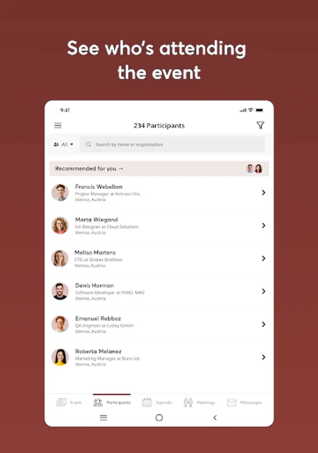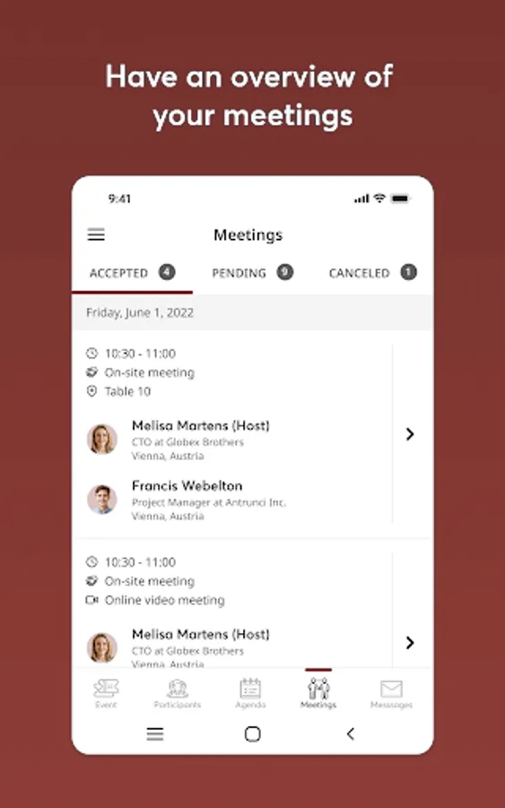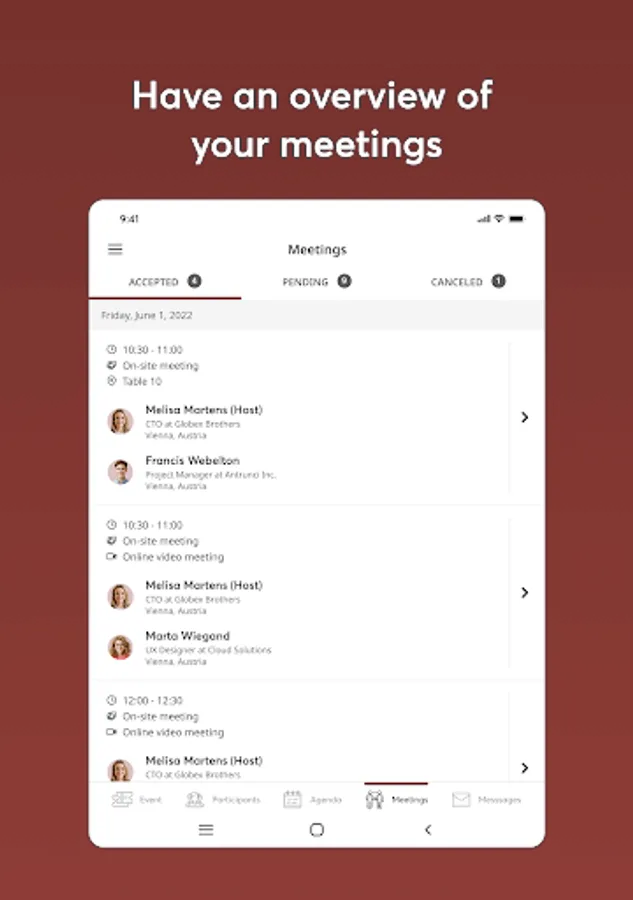 The Lead Today. Shape Tomorrow. App enables you to directly book other participants for face-to-face meetings and provides you with your personal agenda, including all your meetings, sessions, workshops, etc. In addition the App delivers all the vital information needed for a seamless event experience.