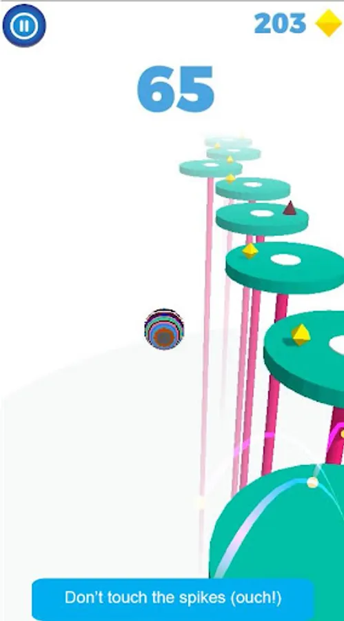 Try to strategize the perfect way to collect diamonds to unlock new ball items. Avoid falling off the edge or hitting the spikes along the way. As you are moving and bouncing through the tiles as the game play speed builds up making things so much more challenging.