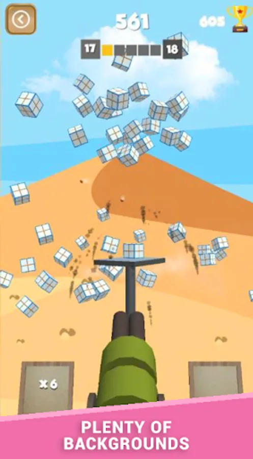 Easily play the game using only one finger, just tap where you want to throw the ball. Aim smart! Complete levels to advance to the next level. Each level has limited balls so if you are exceeded or stuck, get more balls or power-ups to advance! Don’t forget, you can get extra balls with perfect shots so be careful with your aim. Don’t worry; there are many different types of cannons with various powers. So easily pass the advanced level without any difficulty. Beautiful visuals and addictive one hit controls await you! Collect or buy trophies and instead of trophies buy new cannons!