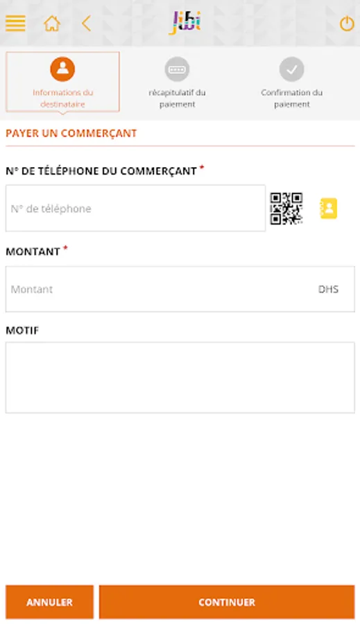 - Envoi d’argent vers un autre compte de paiement mobile Jibi ;
