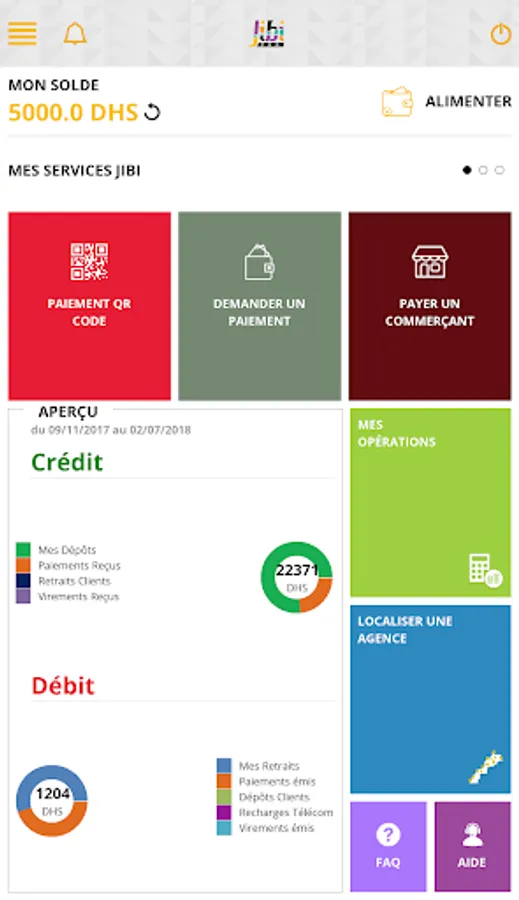 - Recevoir des Paiements de la part des clients Jibi par technologie QR Code ou par saisie du numéro de téléphone