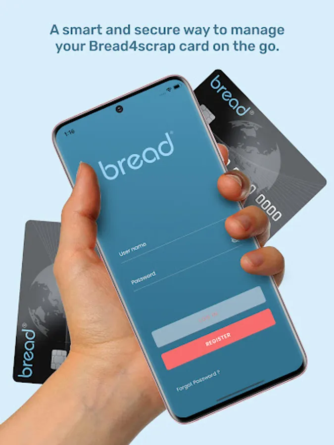 With the Bread app installed on your mobile device, you can manage your Bread4Scrap card on the go. See below the features the app has to offer:
