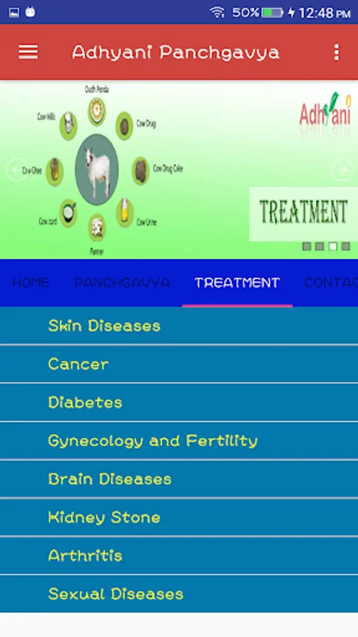 In Gujarat, thousands have achieved good health at the Panchgavya Chikitsa Kendra. Here treatment is offered on ailments like Skin Diseases, Cancer, Urinary Diseases, Digestive System Diseases, Brain Diseases, Sexual Diseases, Gynecology and Fertility, Diabetes and Arthritis etc..