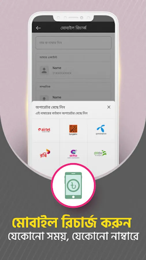 মার্চেন্ট অ্যাপ থেকে খুব সহজেই গ্রামীনফোন, রবি, এয়ারটেল, টেলিটক এবং বাংলালিংক অপারেটর এর মোবাইল রিচার্জ করুন বা বিভিন্ন মোবাইল অপারেটরের রিচার্জ-ভিত্তিক ইন্টারনেট, ভয়েস এবং বান্ডেল অফারগুলি দেখুন এবং কিনুন।