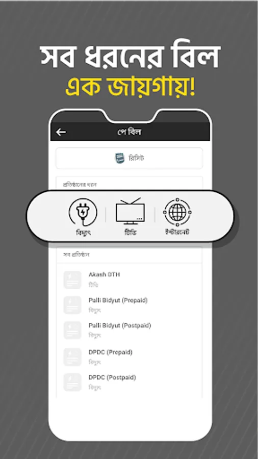 মার্চেন্ট এখন মার্চেন্ট অ্যাপ থেকে যেকোনো গ্রাহকের ইউটিলিটি বিল (বিদ্যুৎ, গ্যাস, পানি, ইন্টারনেট) প্রদান করতে পারেন এবং সাথে সাথে পে বিল নোটিফিকেশন এবং ডিজিটাল রিসিট গ্রহণ করতে পারেন।