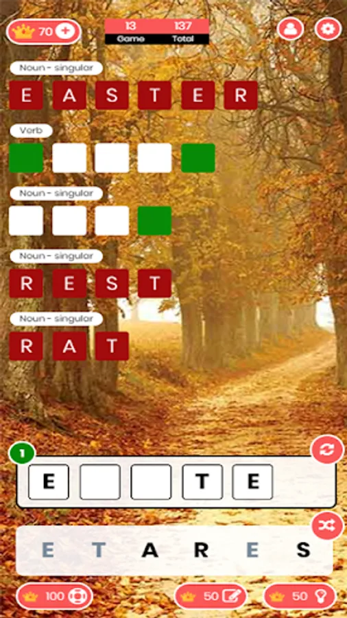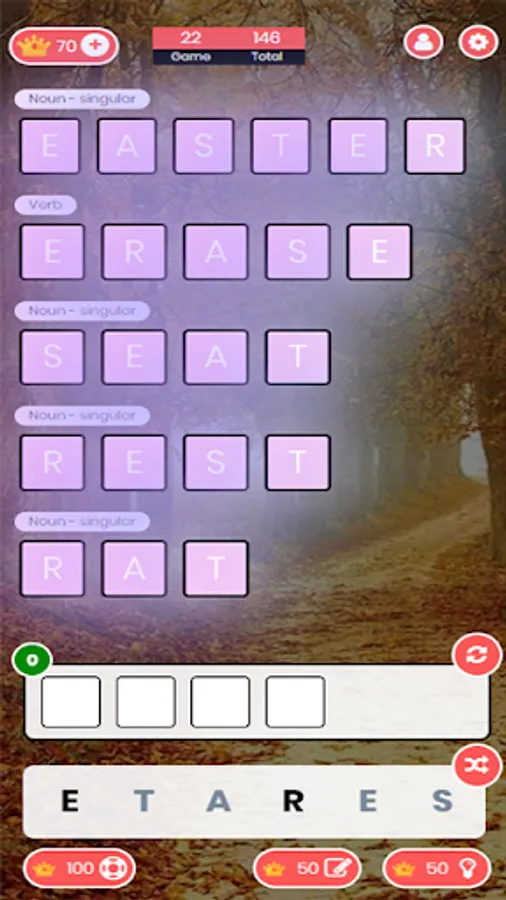 It starts with a few letters and a suggestion. Test your brain and start writing words from scratch until you get the solution of the possible combinations. Master this word game! Ready to match letters? Make all the words!