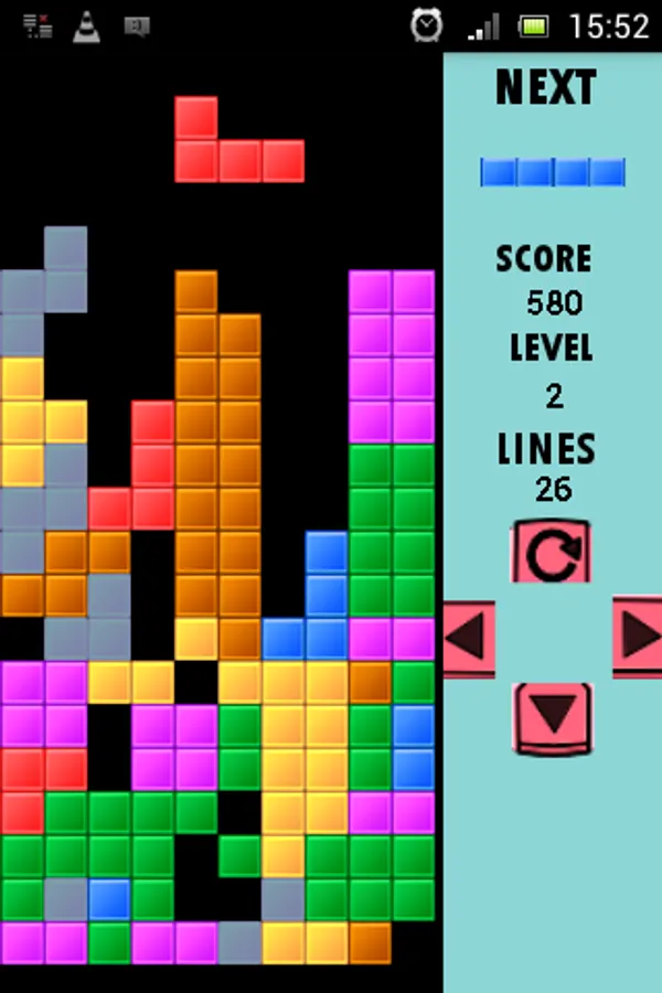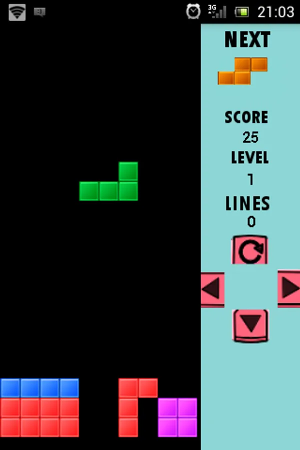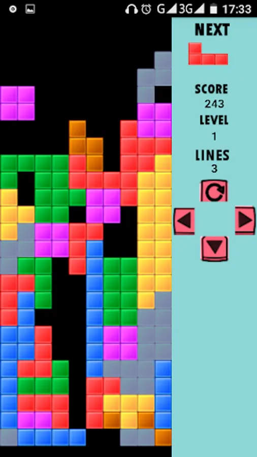Combine the falling blocks to make complete lines to gain points and raise the level.