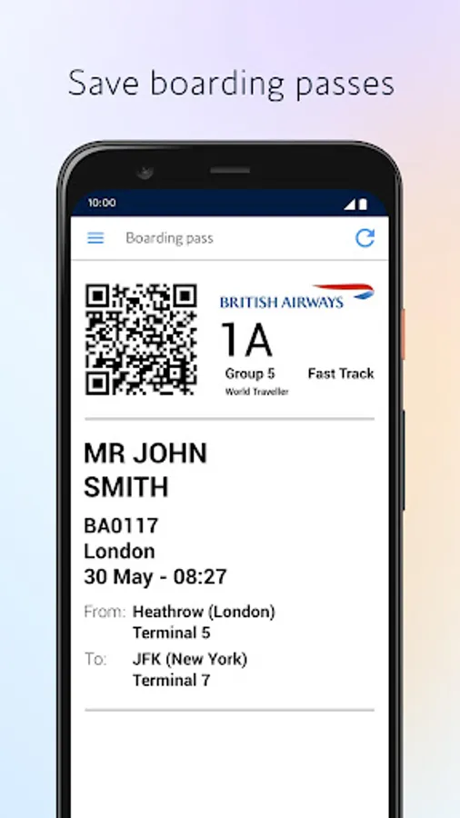 You can add the British Airways widget to your phone's home screen and get the latest information on your next flight, as well as quick access to boarding passes.