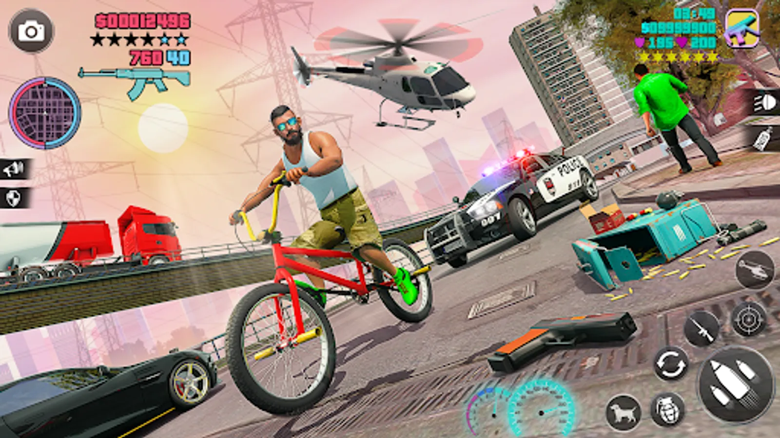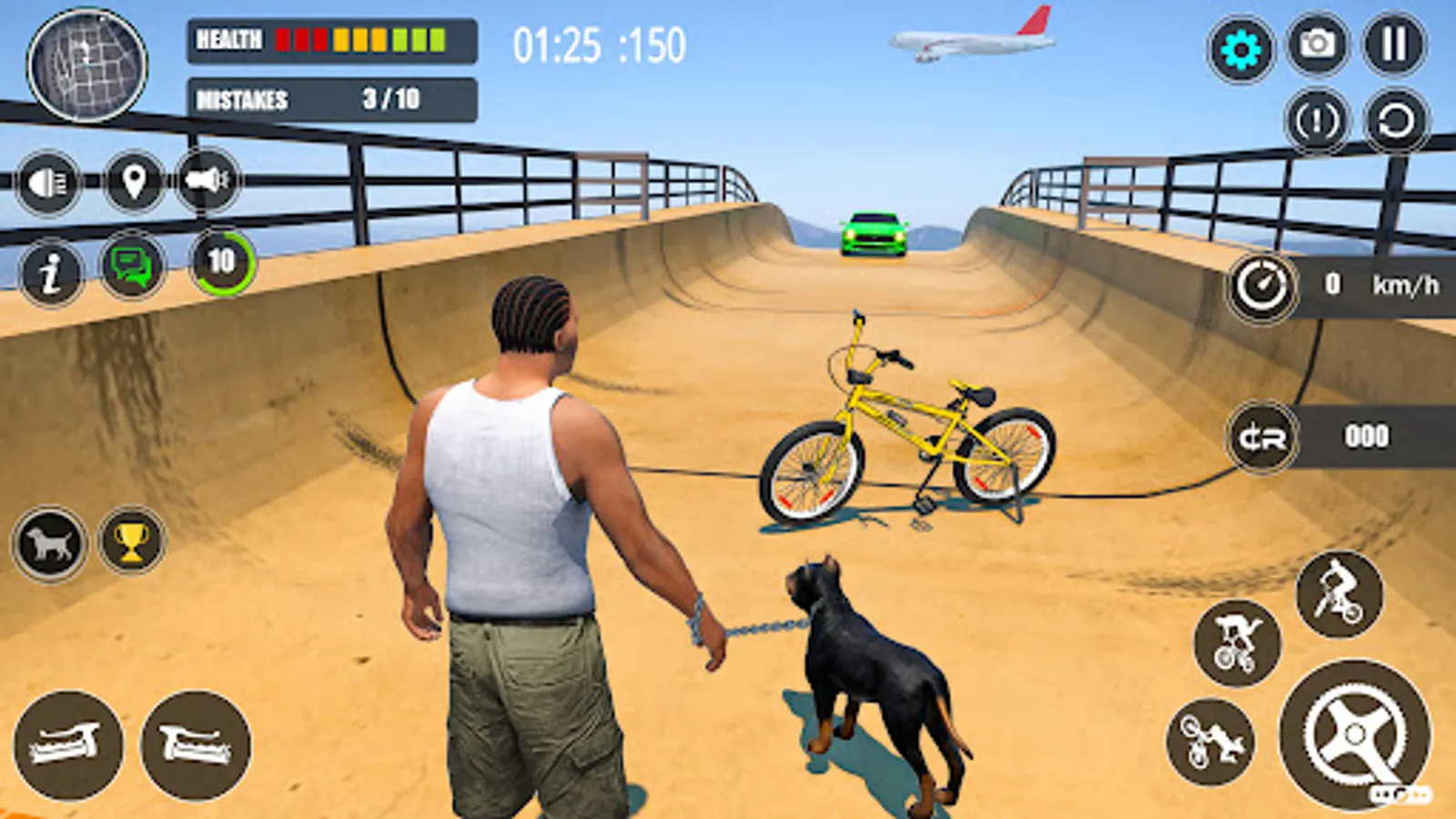 All buttons are self-explanatory; the BMX cycle can be ridden right away with the arrows on screen and direction arrows are there for directions for Crazy BMX Cycle Racing Game 3d