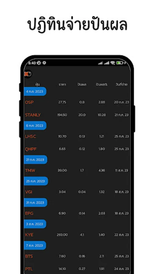 An app for viewing dividend stocks and being able to find the stocks with the highest dividends each day. and a calendar showing the date of the xd sign and the date of dividend payment