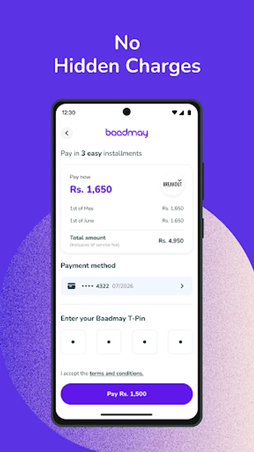 Last-minute untimely gift shopping or an unforeseen expense? Pay with BaadMay now and let us help you pay in easy auto installments. Install the app now to keep an eye on all bills cleared and everything still on your budget.