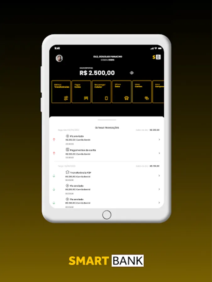 - Make transfers between banks via Ted, Pix and internal transfers.