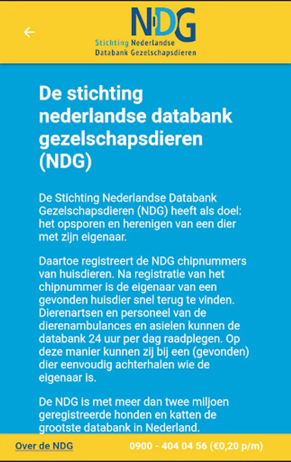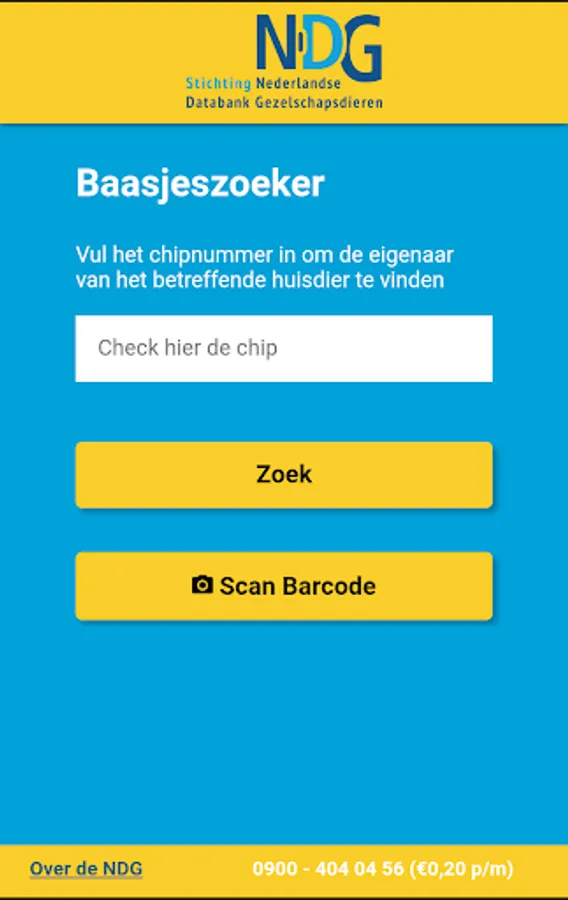 De Baasjeszoeker kijkt eerst of de chip is geregistreerd bij de Nederlandse Databank Gezelschapsdieren (NDG). De NDG is met meer dan twee miljoen geregistreerde honden en katten de grootste databank in Nederland.