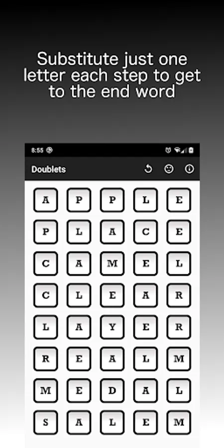 The player is given a start word and an end word. In order to win the game, the player must change the start word into the end word progressively, creating an existing word at each step. Each step consists of a single letter substitution.