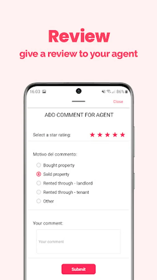 - Agents Reviews: Give a review to your agent or choose an agent based on other users’ reviews