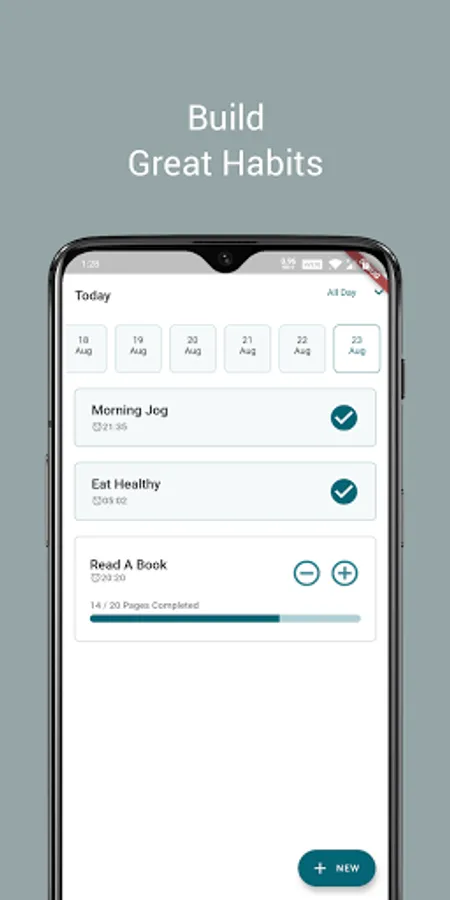 The reality is habits are not build in a day, it takes time and people do fail in the beginning, but they slowly learn and then start reaching their goals. Clean Habits lets you see the bigger picture and visualize you far you've achieved in terms of habit completion using charts and analytics.