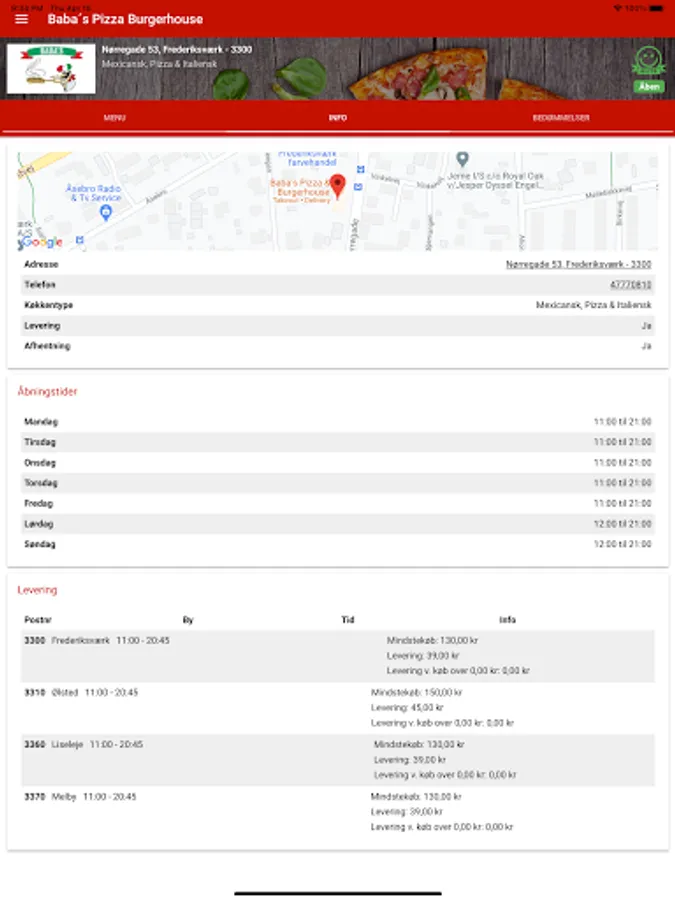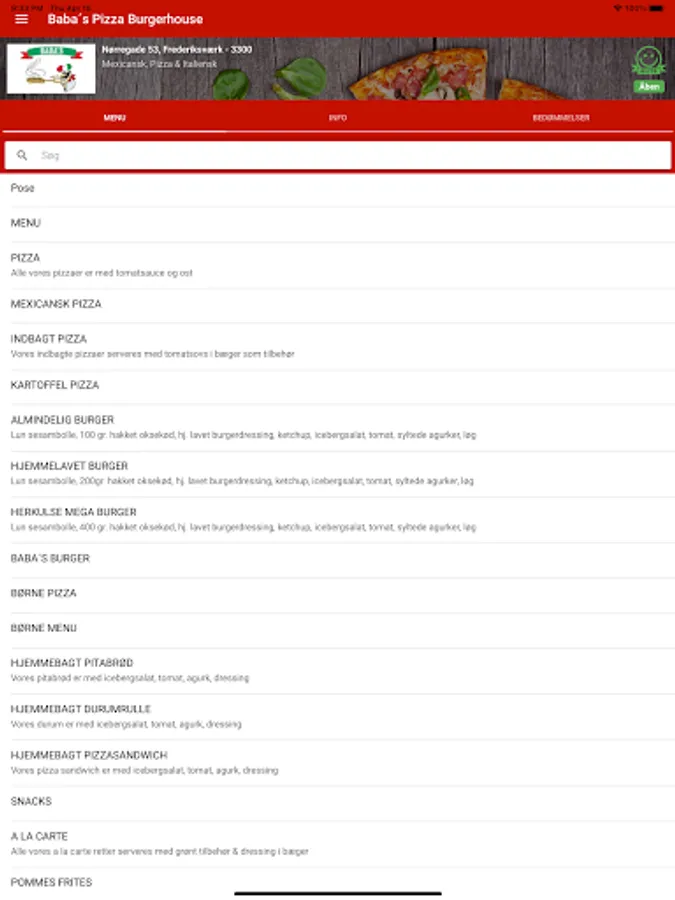 Bestil pizza, burger, pasta, m.m. med få tryk, nemt og hurtigt!