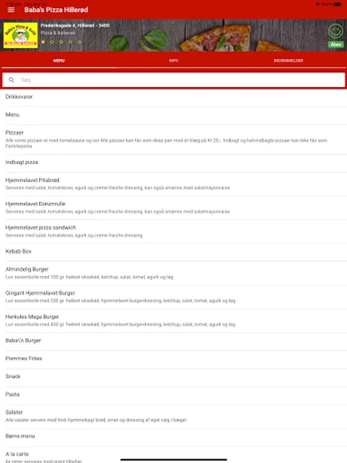 Bestil pizza, burger, pasta, m.m. med få tryk, nemt og hurtigt!