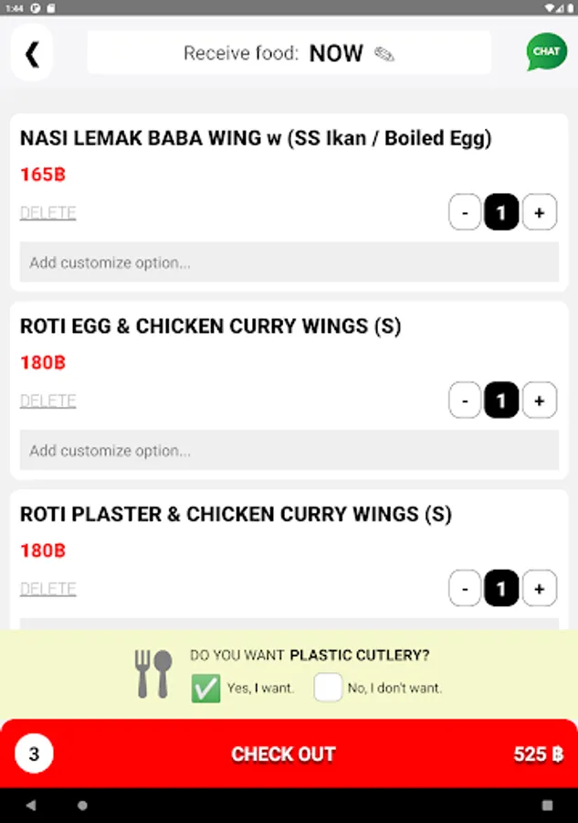 We sell Singapore & Malaysia food such as Nasi lemak, beehoon, laksa, mee goreng, chicken curry, baba wings, cendol & more.