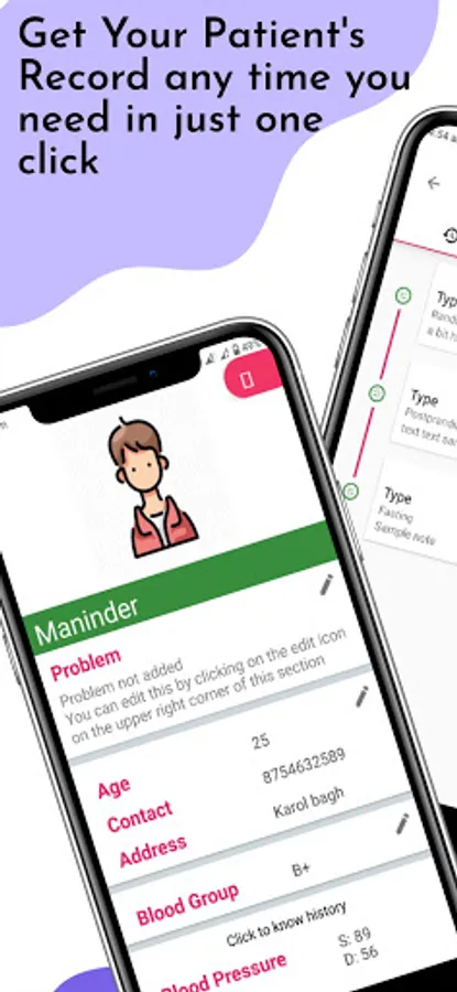You can use this MedChat App to easily save patient records, patient history, health information,Test results,Timeline of Blood Pressure,Blood Sugar,Vaccines,Allergies records .