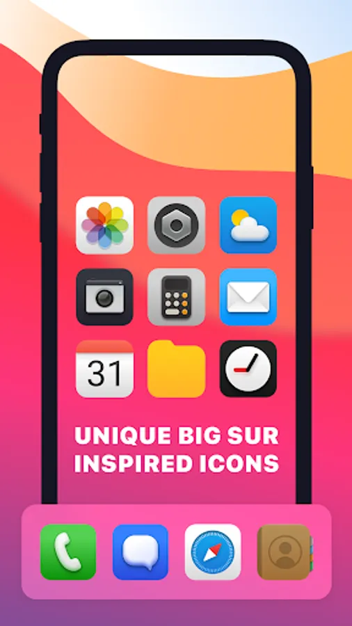 Big Sur icon pack is inspired by the latest installment of Mac OS, mixed with iOS design elements. We update our app weekly , stay tuned for more icons and wallpapers. Compatible with a wide variety of launchers, like Nova and Apex.