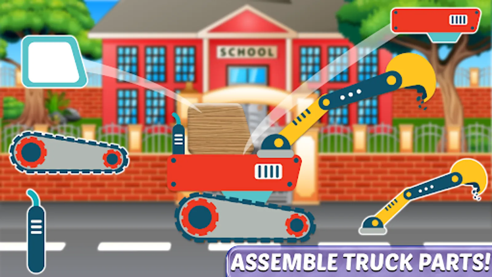 Let's start with build a truck and then building a house with the services of construction vehicles to improve toddlers construction learning skills in this FREE kids Trucks auto workshop and garage services game for children of ages 2 to 5 years old. Improve chic baby play group school friends problem solving and automotive.