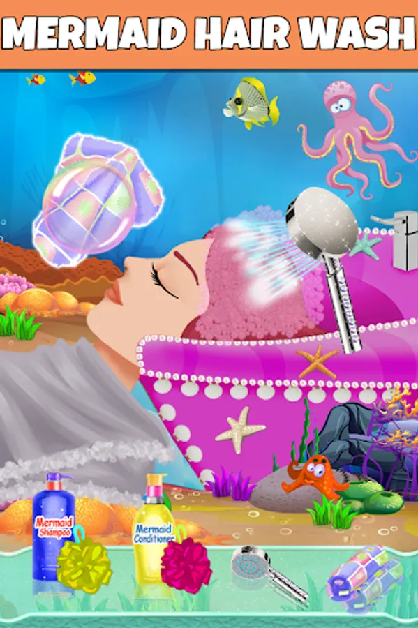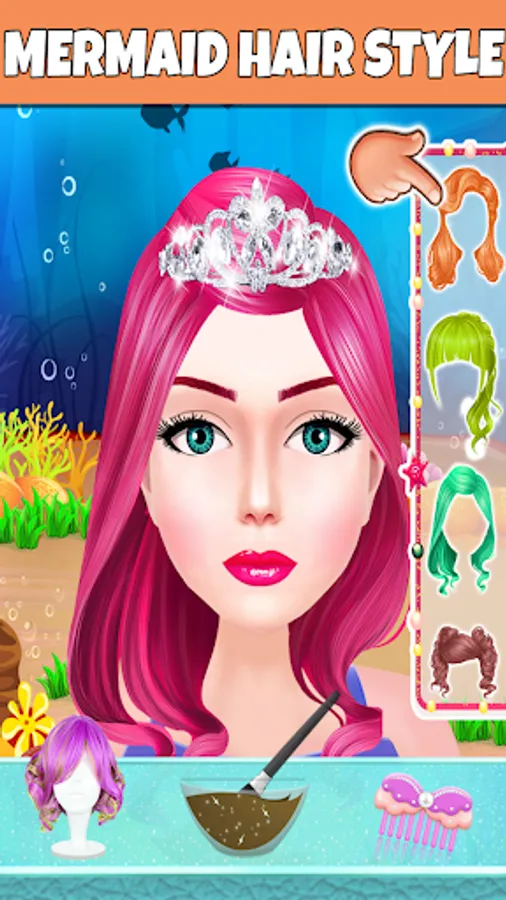 Open your own mermaid salon and help them to get ready for a makeup contest show. Become a chic doll hairdresser in this barber games. Prove to be the best makeup artist for school girls in your town in this 2 to 8 years old doll games “Mermaid Girls Makeover Games”. Give your client a refreshing spa in your salon in this makeup games for kid girls. Wash her hair with shampoo and do her facial for flawless smooth skin. Now, your mermaid is ready for a makeover. Do her makeup with your amazing skills and improve them. There are many different makeup items which you will love in this makeup games for preschoolers. Do makeup with amazing eye shades, lipstick, mascara, blush on etc and make your beautiful mermaid more pretty!