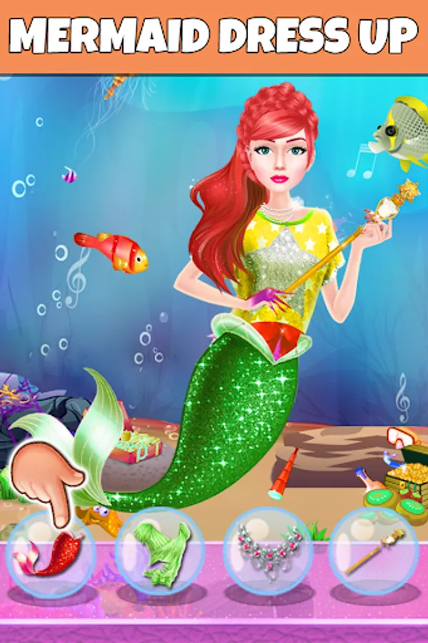 Help your mermaid in choosing the dress in this dress up games. There are so many pretty outfits in this girls games for 2 to 8 years old “Mermaid Girls Makeover Games” that she is unable to decide what she should wear for this contest. Become a designer and help her in picking up the dress. You can choose any type of dress like frocks, pent shirts, costumes etc in this doll games. Create amazing combos and let your inner designer shine. Now, choose some jewellery by matching the outfit. There are amazing accessories as well along with makeup. Select a beautiful necklace, earrings, rings, bracelets etc for her jewellery makeover. Don’t forget about hair in this barber games. Hairstyling is the most important part in makeup contest shows. Become a chic doll hairdresser and create an amazing hairstyle for her in the hairdresser salon. Complete the look by selecting beautiful shoes and bags. Now your mermaid is looking extremely beautiful and is ready to go on a makeup contest show in this fashion dress up games. And we’re sure that she's gonna win the competition, thanks to your service.
